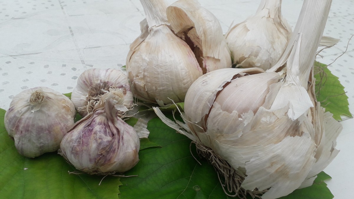 pakiranje 1 kom (oko 300 g) ili 1 kg ("mali" češnjak na fotografiji je normalna veća glavica češnjaka, za usporedbu)